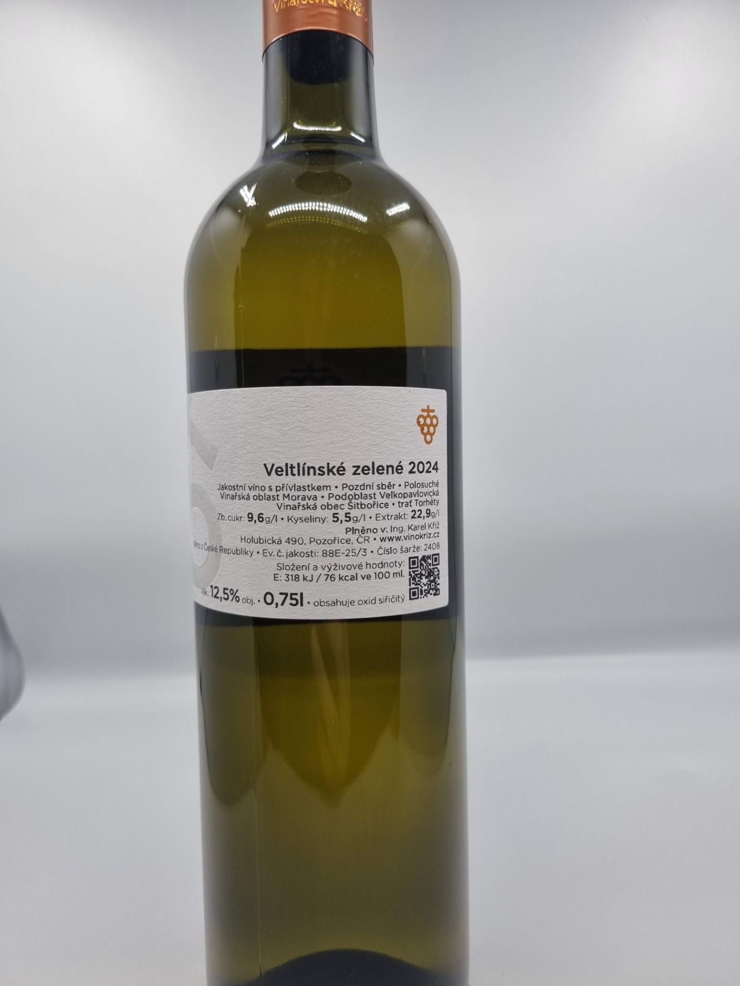 Jakostní víno s přívlastkem pozdní sběr,polosuché, cukernatost hroznů 22°,zb.cukr 9,6g/l, kyseliny 5,5g/l, bezcukerný extrakt 22,9g/l